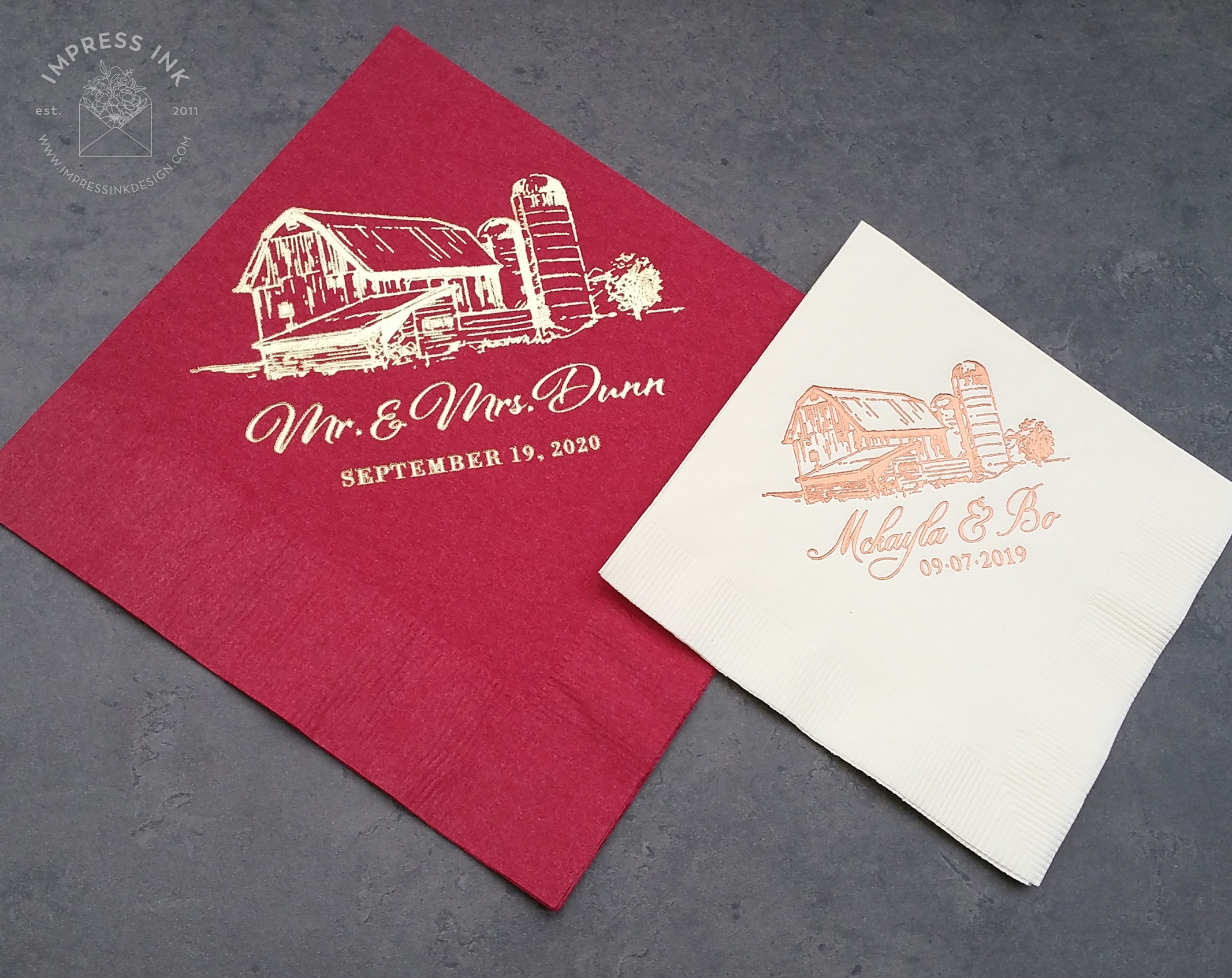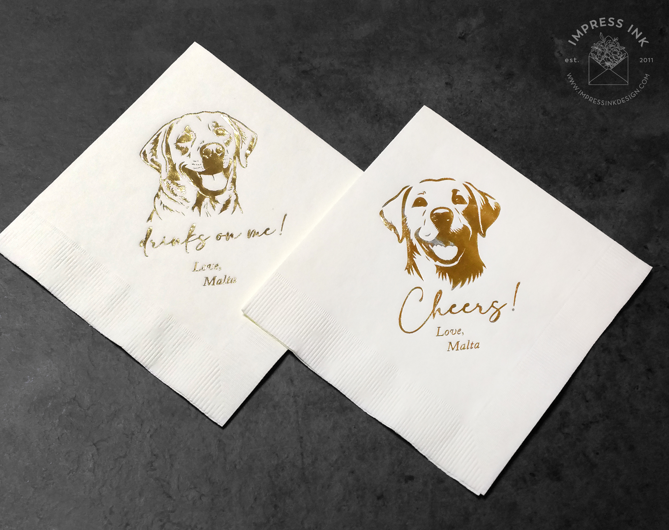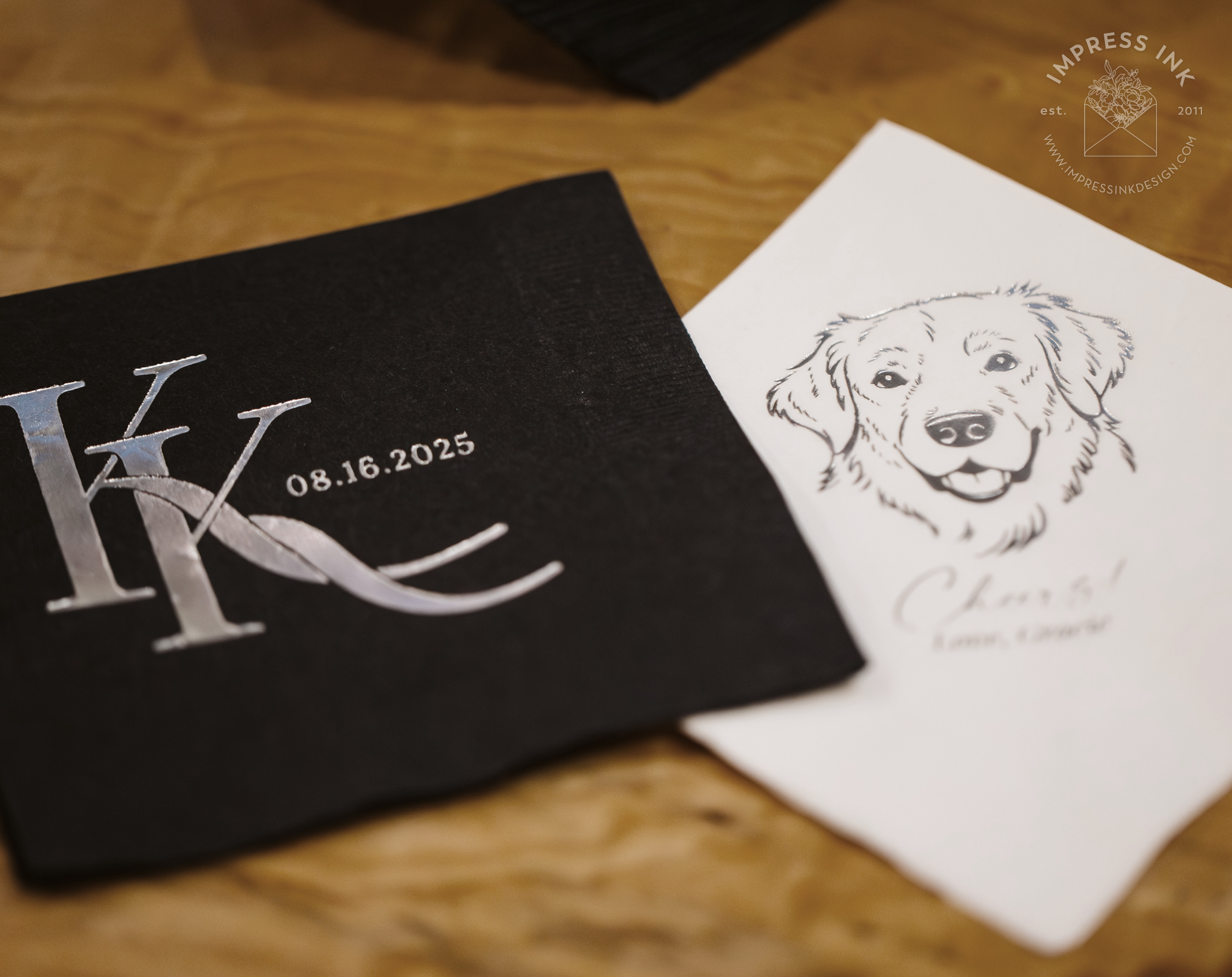 It’s the little details that tie everything together! Personalized napkins for the bar are just another way to add a spark of personality to your event. More napkins design ideas can be found here.