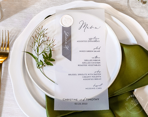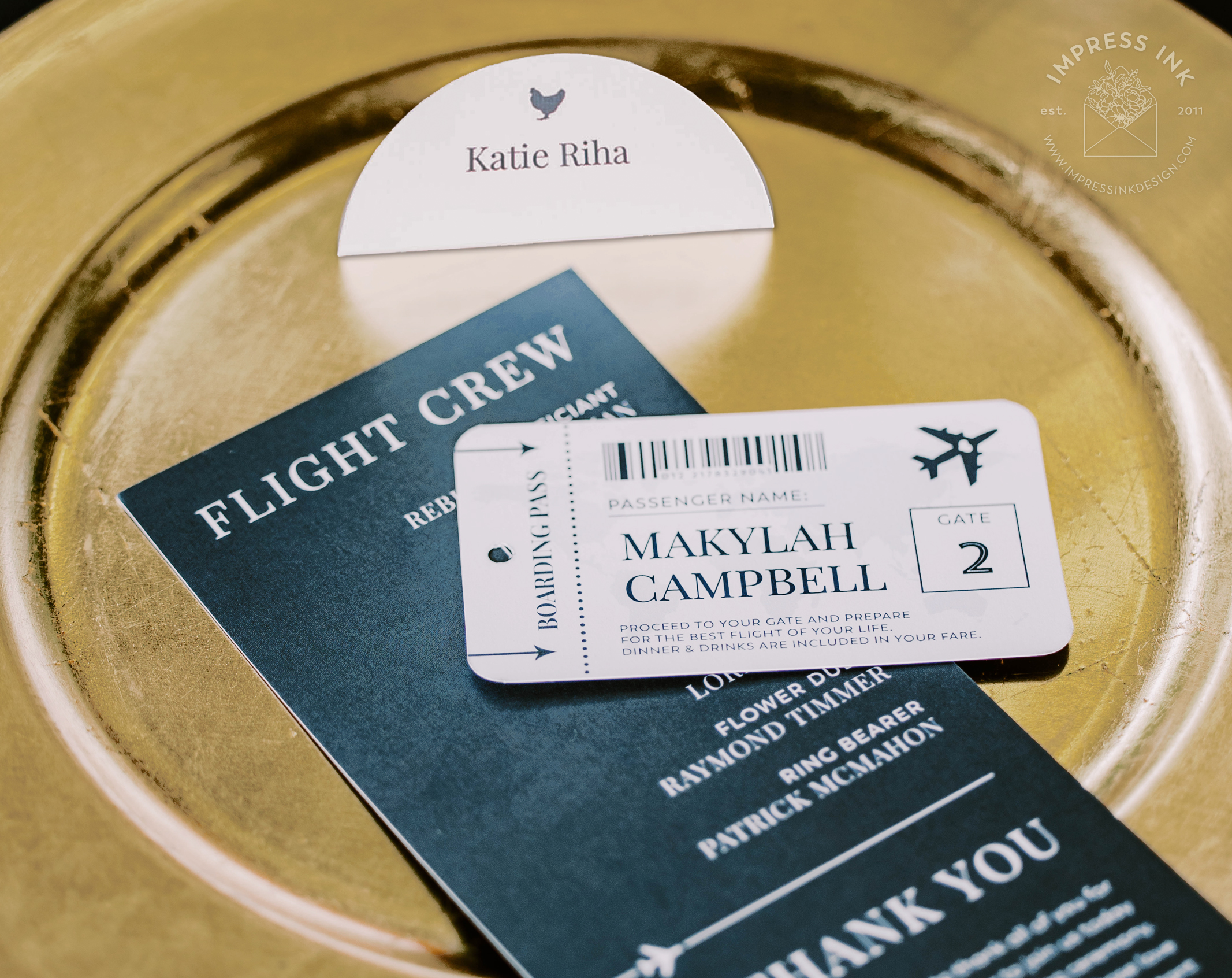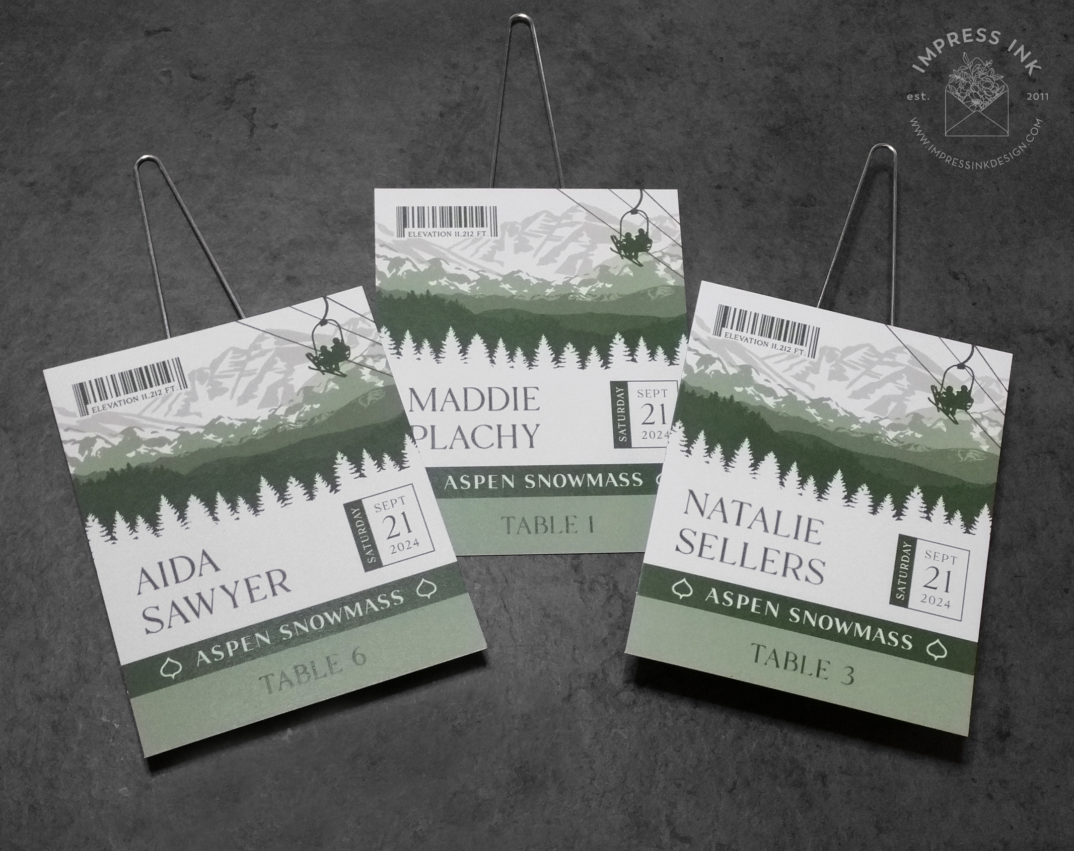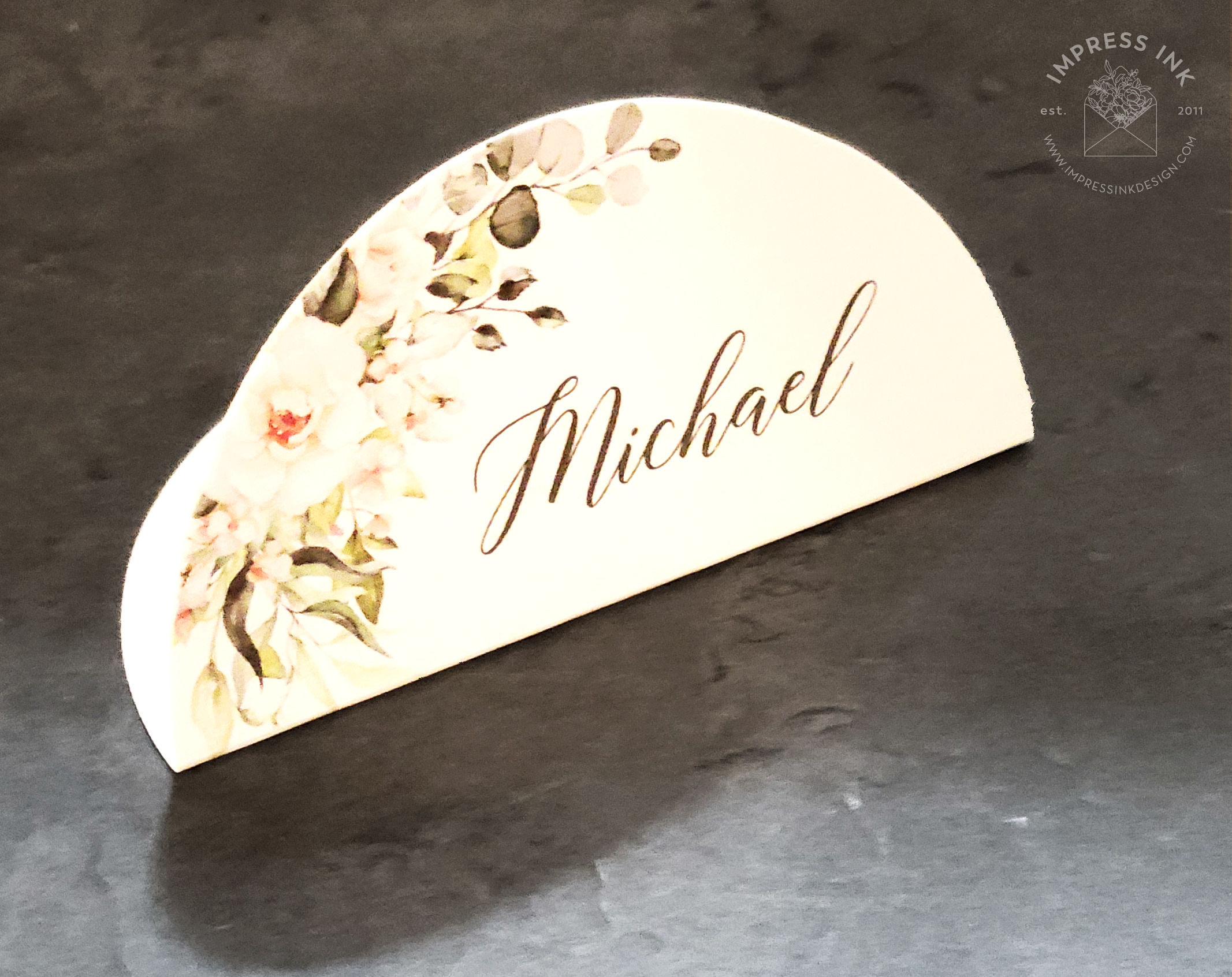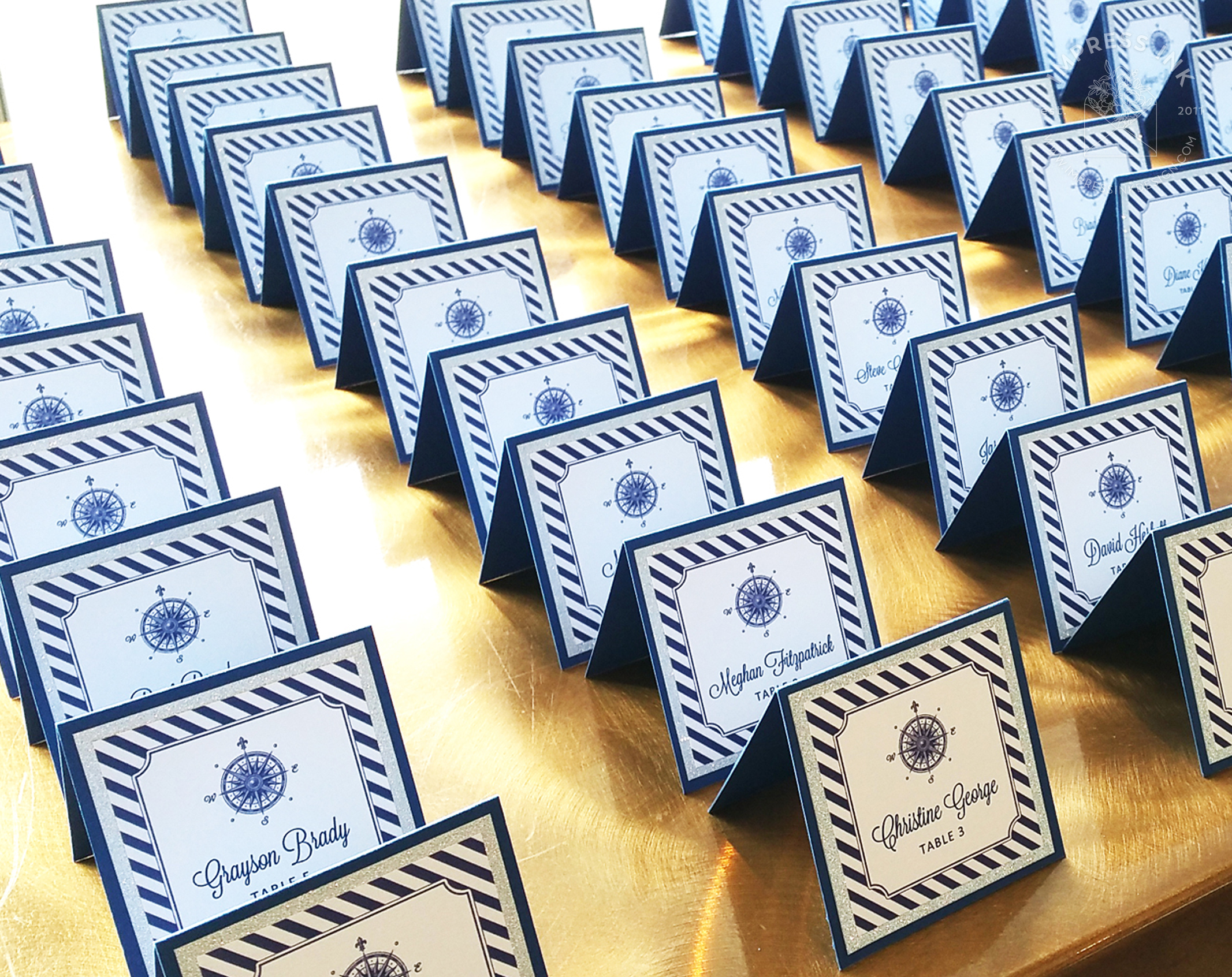 Place cards are used in combination with a seating chart assign guests to their exact seat at the table. Escort Cards are used in lieu of a seating chart to assign guests to a table to choose their seat. Both come in many different styles to fit the theme and aesthetic of your event.