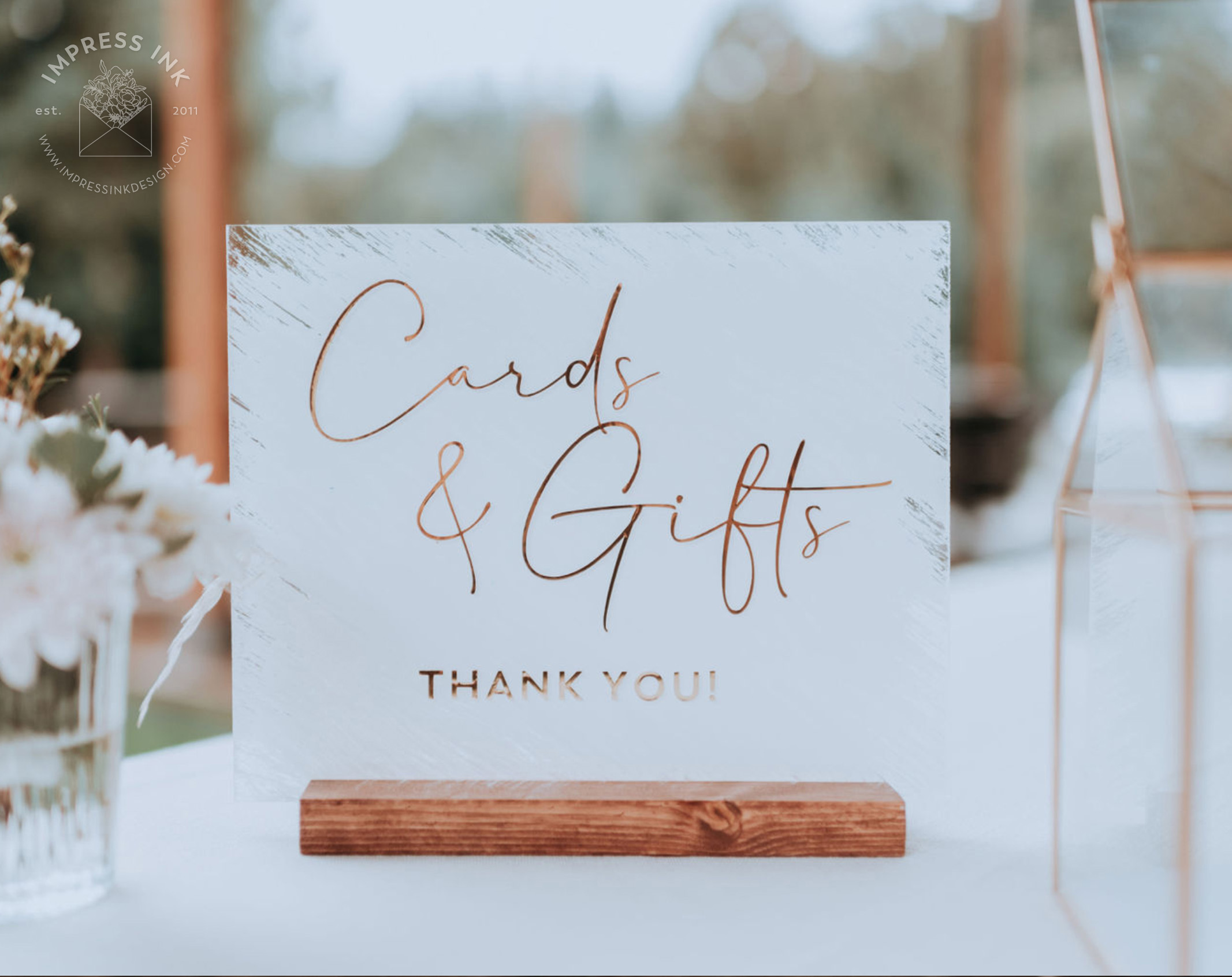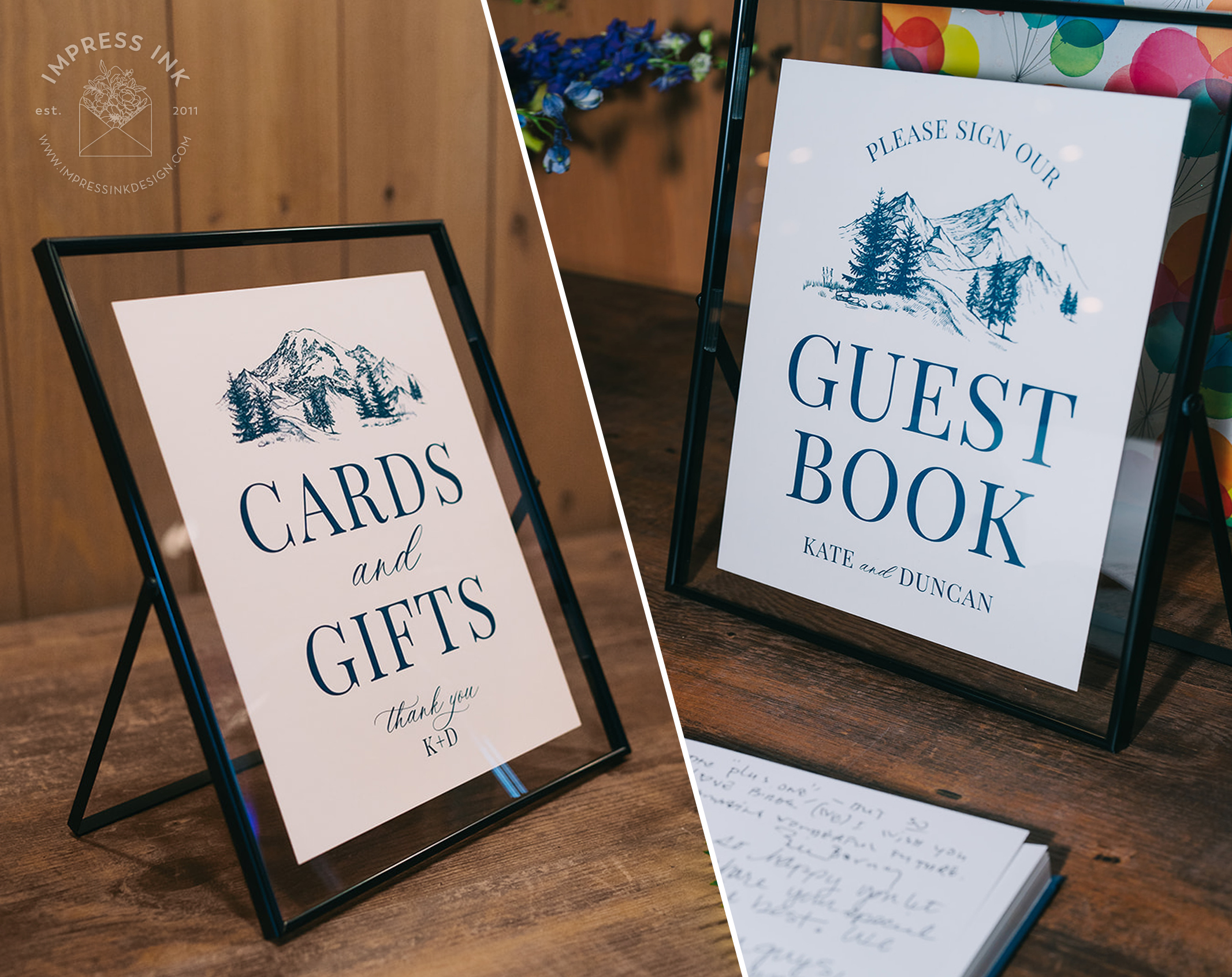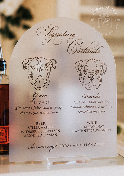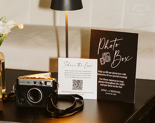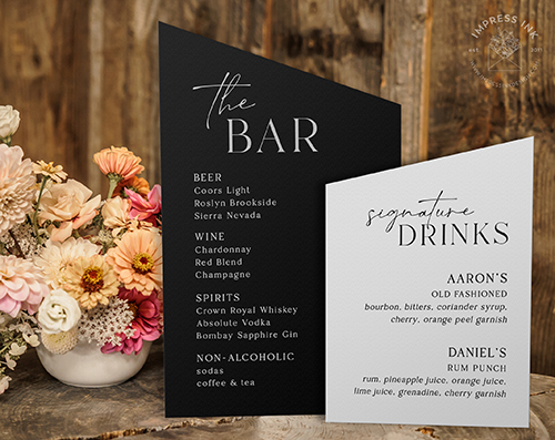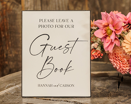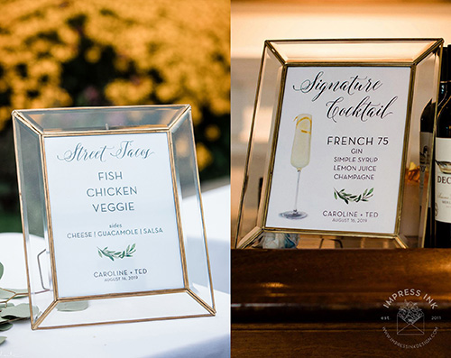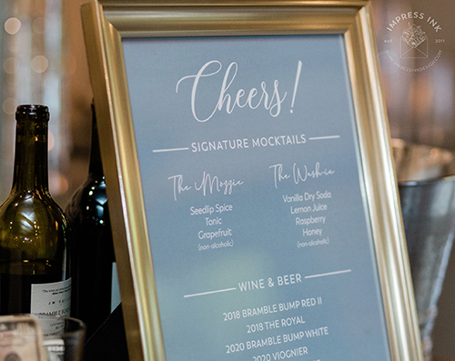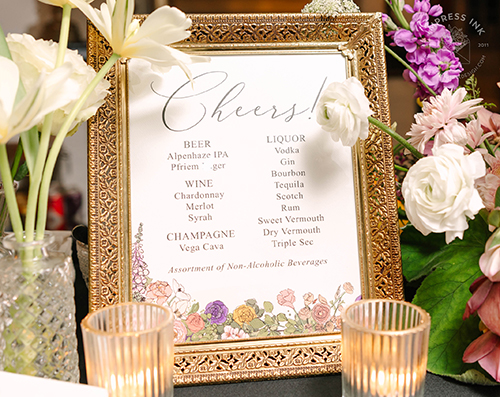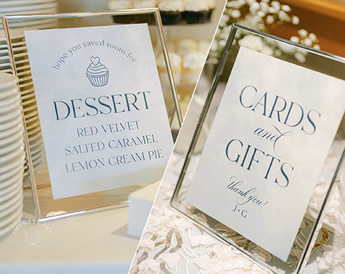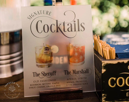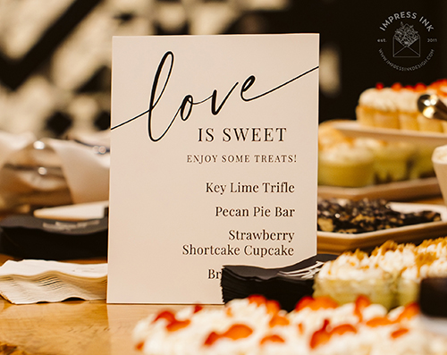 Custom table top signage help guide your guests throughout your event. Signage is completely custom and is available in many different materials and shapes, including cardstock for your frames, rigid board with easel-backs, acrylic, and wood.