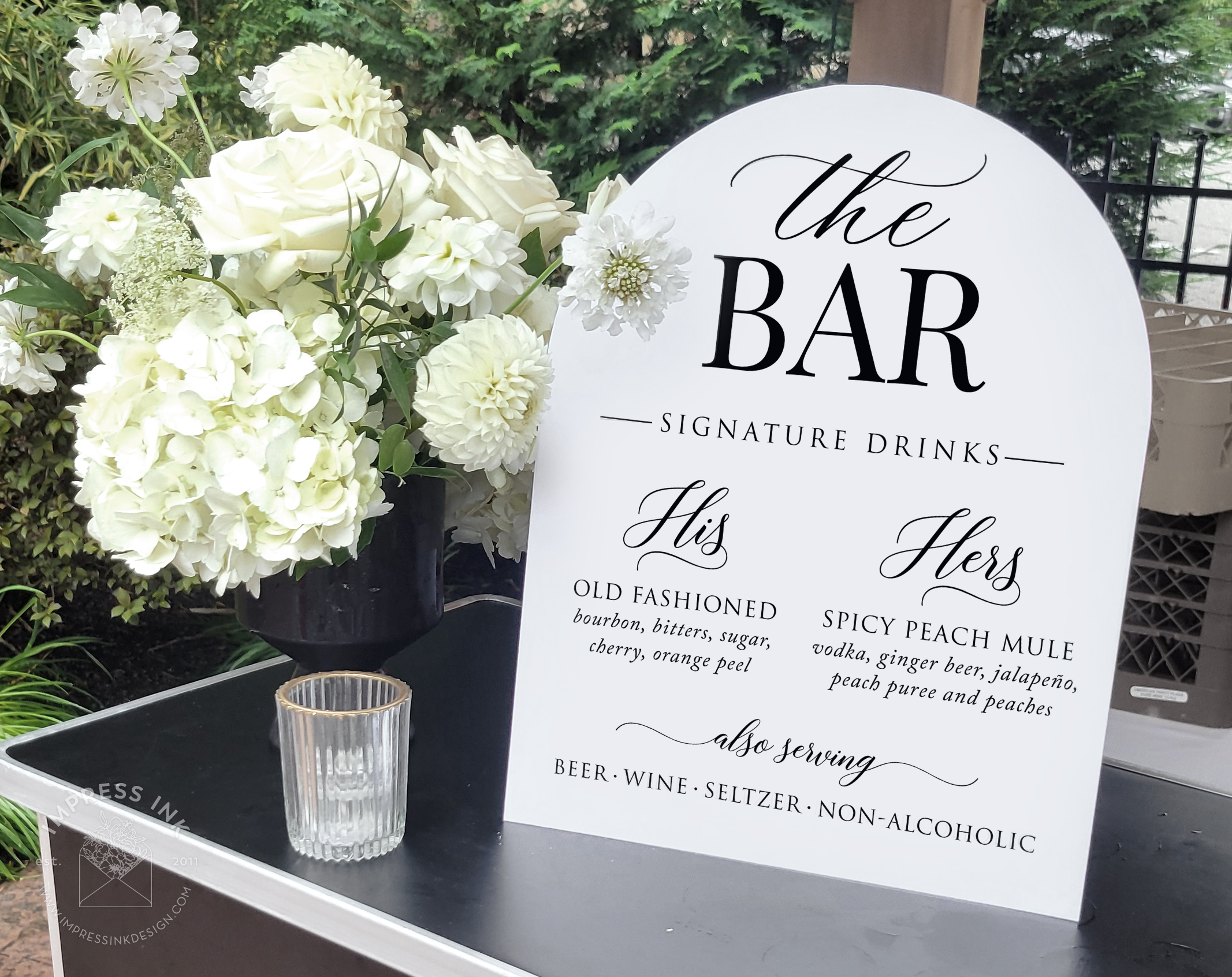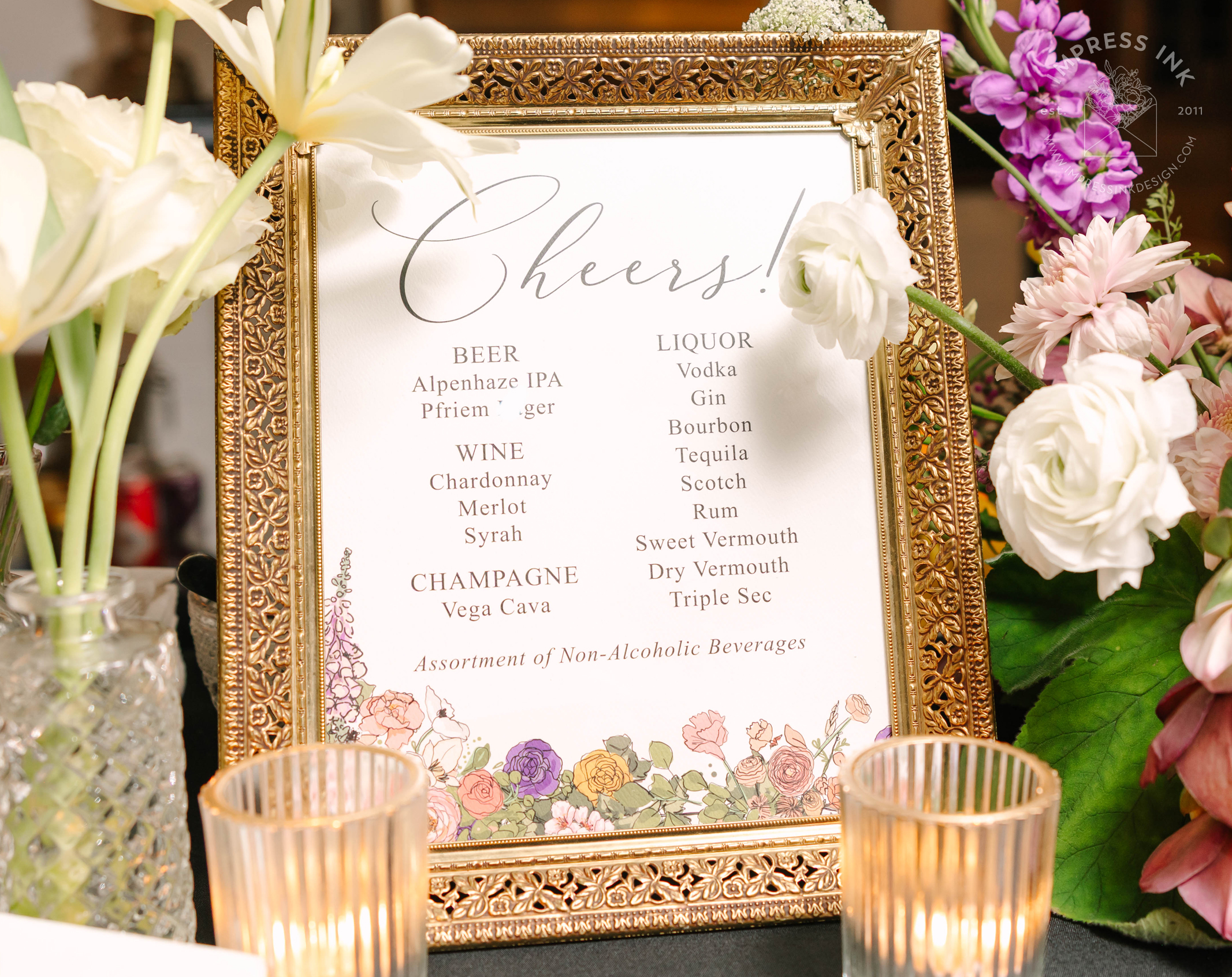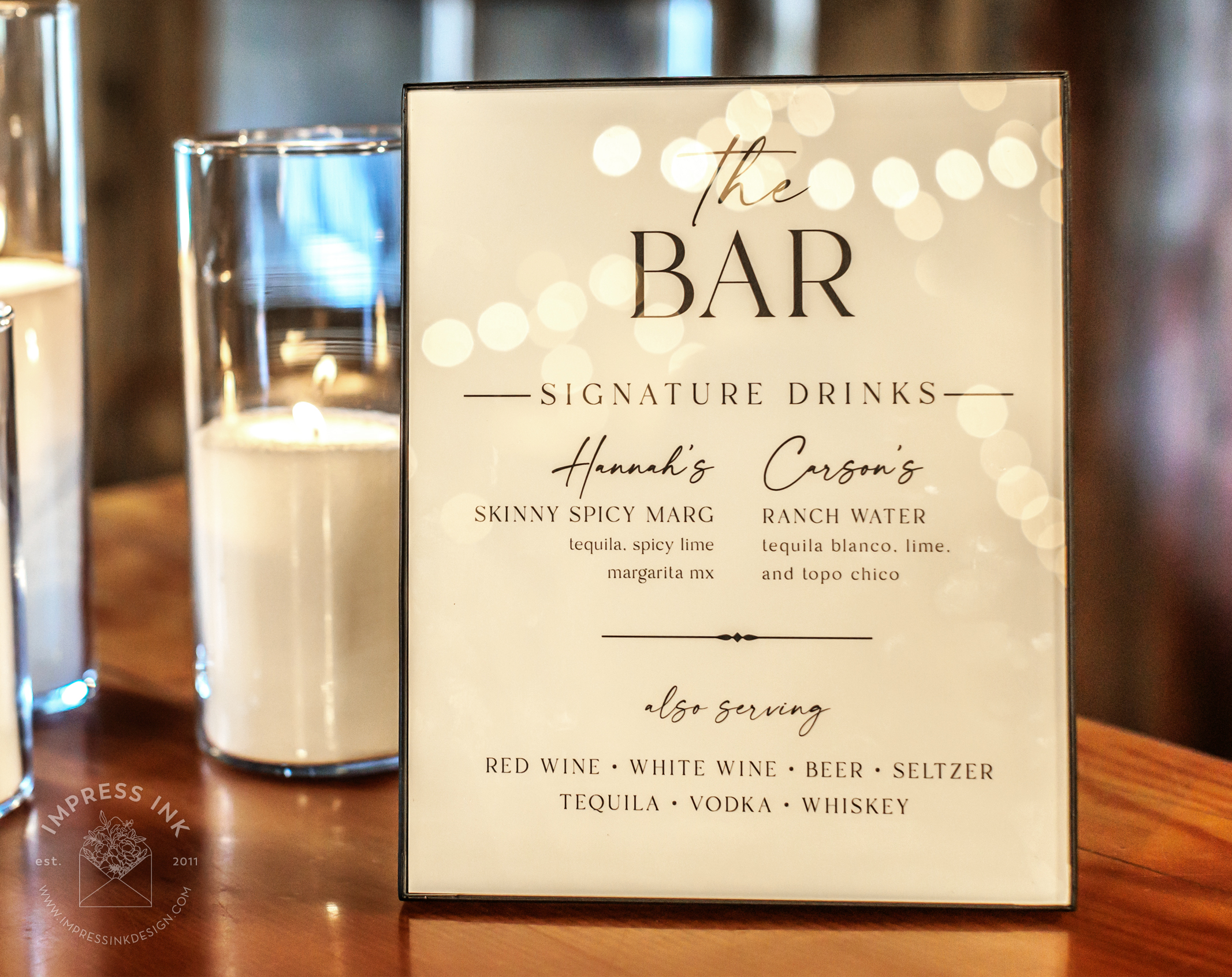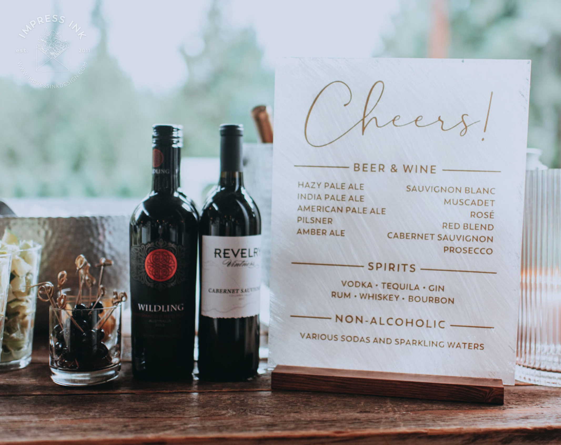 Custom table top signage help guide your guests throughout your event. Signage is completely custom and is available in many different materials and shapes, including cardstock for your frames, rigid board with easel-backs, acrylic, and wood.