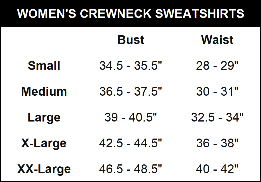 Women's Small, Women's Medium, Women's Large, Women's XL, Women's XXL